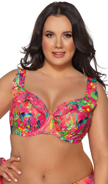 Puha női úszómelltartó - puha csészék színes virágmintával - jó melltámasz - a pántok nem levehetők, sallangok segítségével állíthatóak - kiegészítésképpen hálóval bélelt - fém csattal zárható - az SF-191/2, SF-192 úszónadrág garnitúrához Összetétel: 80% poliamid, 20% elasztán