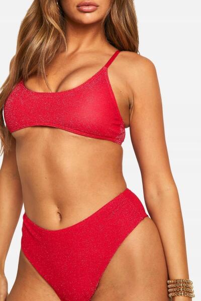 Boohoo Piros Csillámos Bikini Fürdőruha Felső Klasszikus Boohoo 40