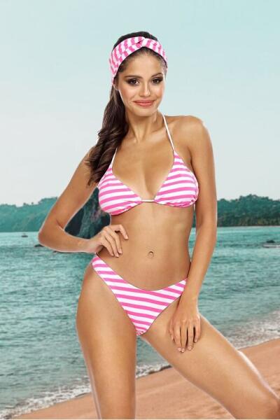 Lorin Valencie női fürdőruha, fehér-rózsaszín, csíkos, S