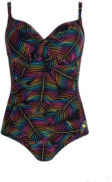 Egyrészes fürdőruha - puha csészék aládróttal - telt, beborítja a melleket - színes nyomtatás - állítható, nem eltávolítható pántok - hátsó kivágás Anyaga: 85% poliamid, 15% elasztán