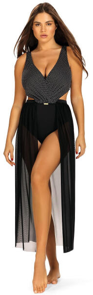 Egyrészes fürdőruha - kiváló minőségű anyag, gyorsan száradó, klór- és napfényálló - csont nélküli csészék, vékony szivaccsal megerősítve - fehér pöttyök a felső vonalon enyhe fodrokkal - szűk bugyi - Lenyűgöző hasítékok a derékmagasságban - könnycsepp nyakkivágás a háton - gőz nélkül Összetétel: 85% poliamid, 15% elasztán