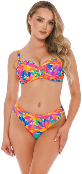 Kétrészes fürdőruha - aládrótozott bardot melltartó - párnázott csészék - push-up betét választott 36B/C, 38B/C, 40B/C, 42B méretekben - állítható, levehető pántok - állítható kerületű záródás - klórálló - klasszikus szabású bugyi Összetétel: 85% poliamid, 15% elasztán