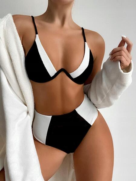 Shein WC24119 Shein Kontrasztos Kétrészes Merevített Fürdőruha (34) M