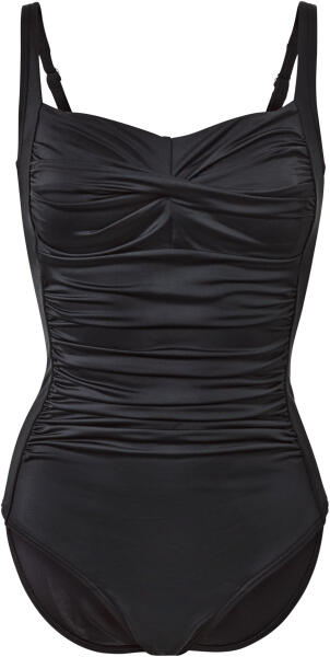 Alakformáló fürdőruha, fekete Szín: Fekete Anyag: 82% poliamid, 18% elasztán Hálós rész: 85% poliamid, 15% elasztán Bélés: 88% poliészter, 12% elasztán Kosárbélés: 100% poliészter Egyéb megjegyzések: Méretjavaslat: 38-as méret: 70–80 B kosár 40-es, 42-es méret: 75–85 B–C kosár 44-es, 46-os: 80–90 C–D kosár 48-as méret: 85–95 D–E kosár Elöl alakformáló power mesh anyag a karcsúbb sziluettértBeledolgozott puha kosarakkalMell alatti belső gumiLYCRA® XTRA LIFE szálakkal: fokozottan klór- és UV-állóÁllítható hosszúságú vállpántok